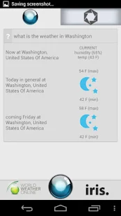 Note: You need to have “Voice Search” and “TTS library” installed in your phone for iris. to work. Most of the phones have these pre-installed, if not please install them from Android market before you try iris.