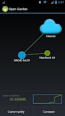 Open Garden works like a mobile wifi hotspot and provides you with the same benefits as tethering applications. It is comparable to PDA Net or EasyTether but doesn’t require the use of a USB cable. It works without root like FoxFi, but doesn’t limit your usage if you don’t pay. And unlike Wifi Tether or Barnacle no root access is required.